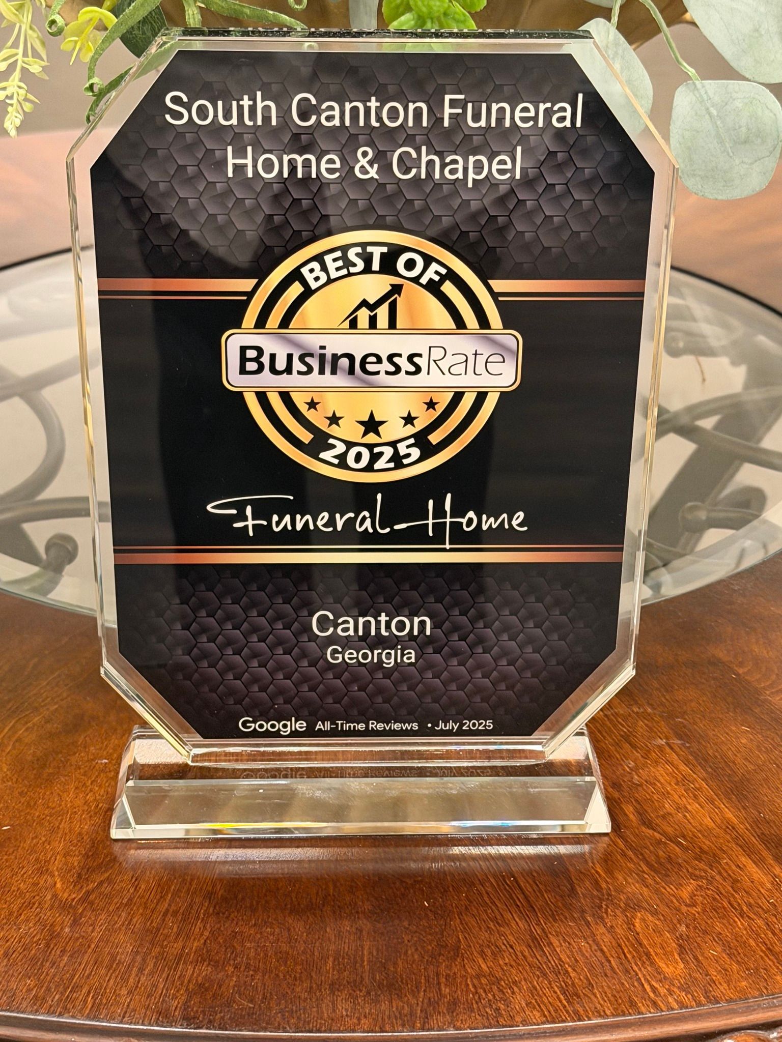 We are deeply honored to share that South Canton Funeral Home has received a Google “BusinessRate - Best of 25” Award for All-Time Reviews